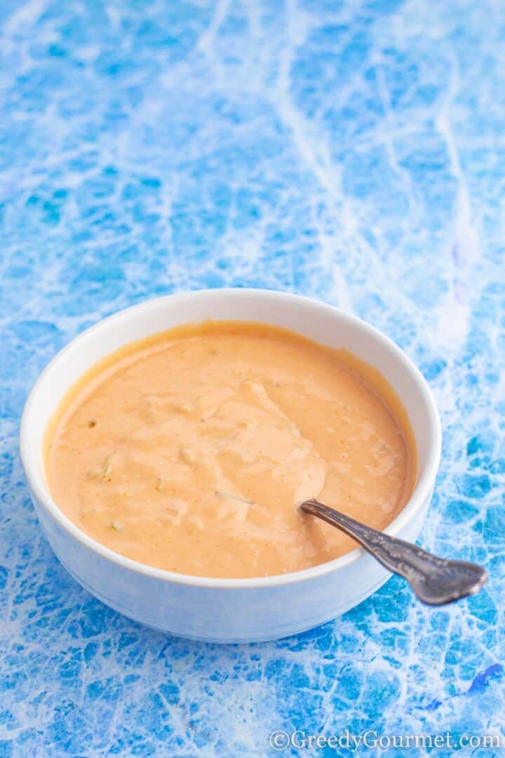 With just 5 ingredients – all of which you’ve most likely got in your kitchen right now – In-N-Out sauce is a cinch to make.